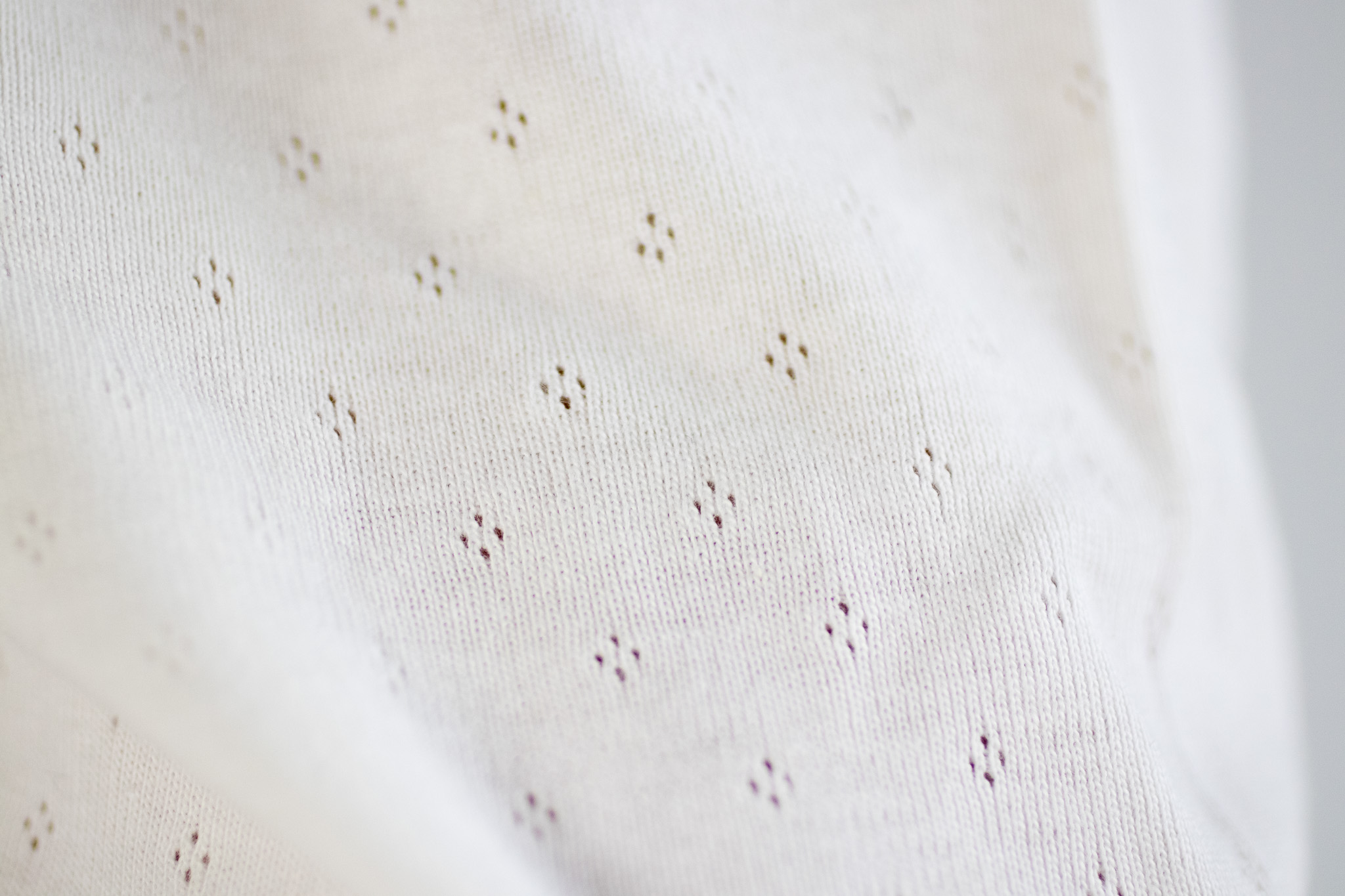 Naturaalvalge kootud, pehmest puuvillasest materjalist tuunika. Pikkus ca 70 cm. Varruka pikkus ca 60 cm.